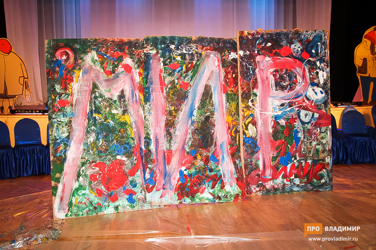 Гостей фестиваля порадовали и необычным перфомансом. В центре зрительного зала несколько художников нарисовали руками и ногами картину мира. Потом все дружно прокричали, каждый свое, имя. Этот необычный шум творцы назвали «звуком мира».