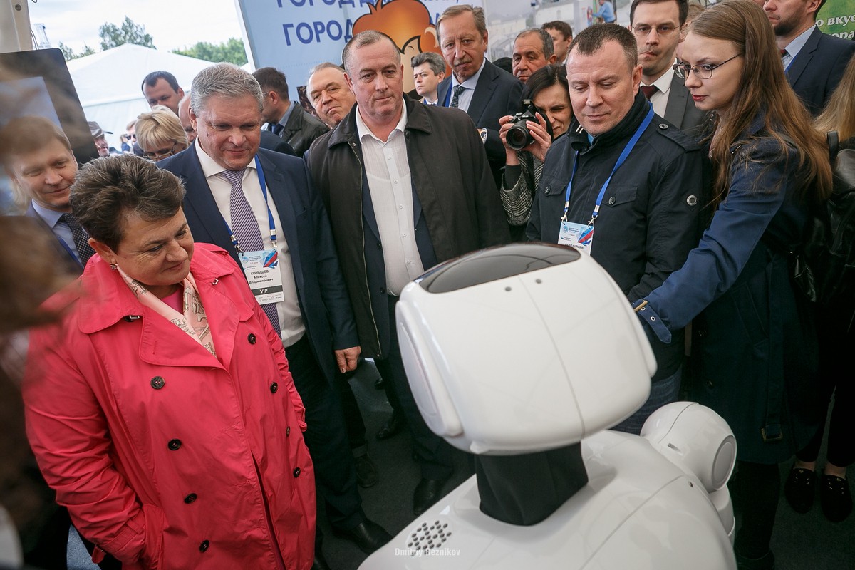Процессия пообщалась с роботом, посмотрела за подписанием соглашений, послушала многочисленные рассказы о достижениях местных промышленников – на манеже оказались все те же. Особенно шумно и тесно было в большом шатре с продуктами питания – там делегацию встречали хлебом и солью, пели частушки и подпаивали разнообразными напитками.