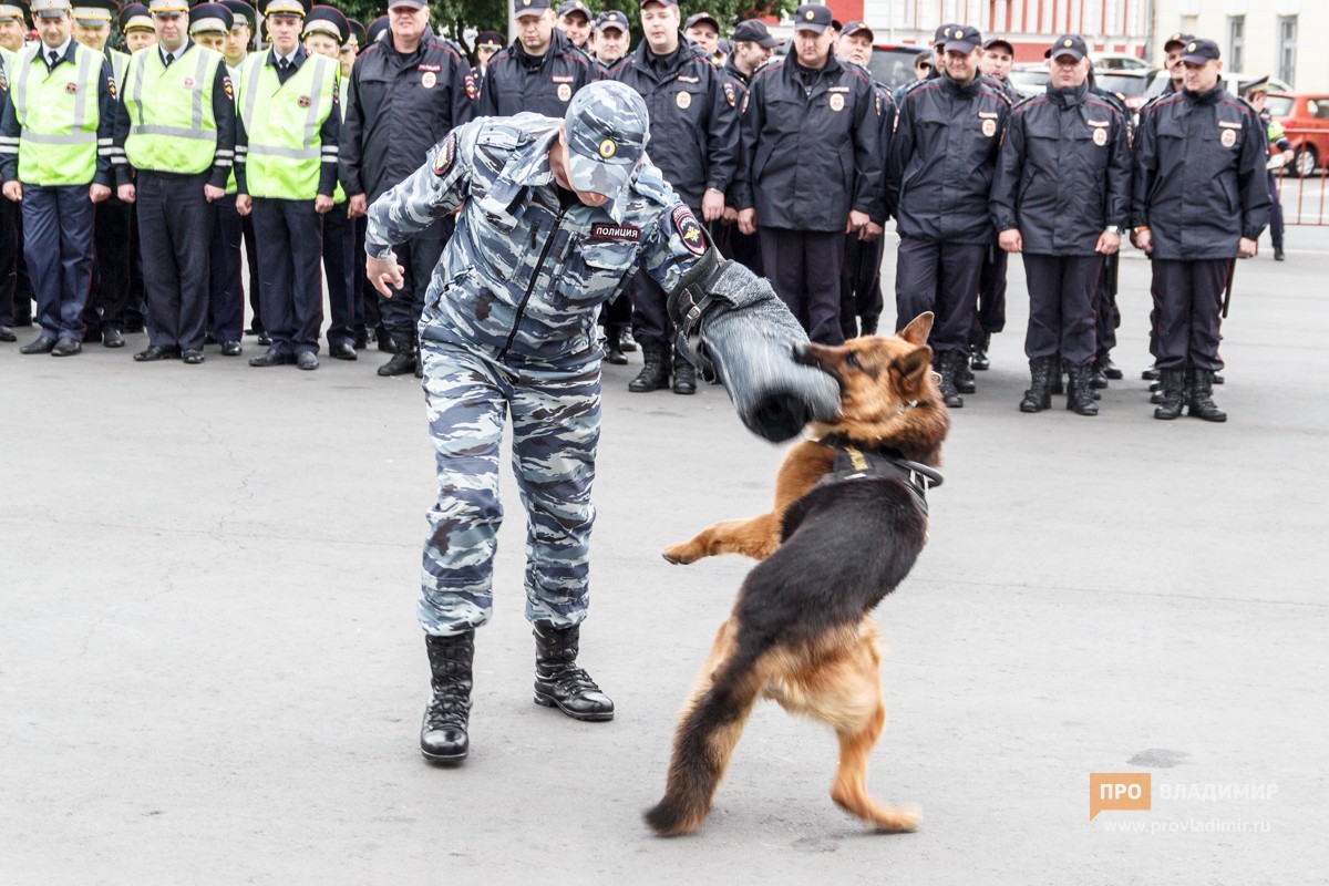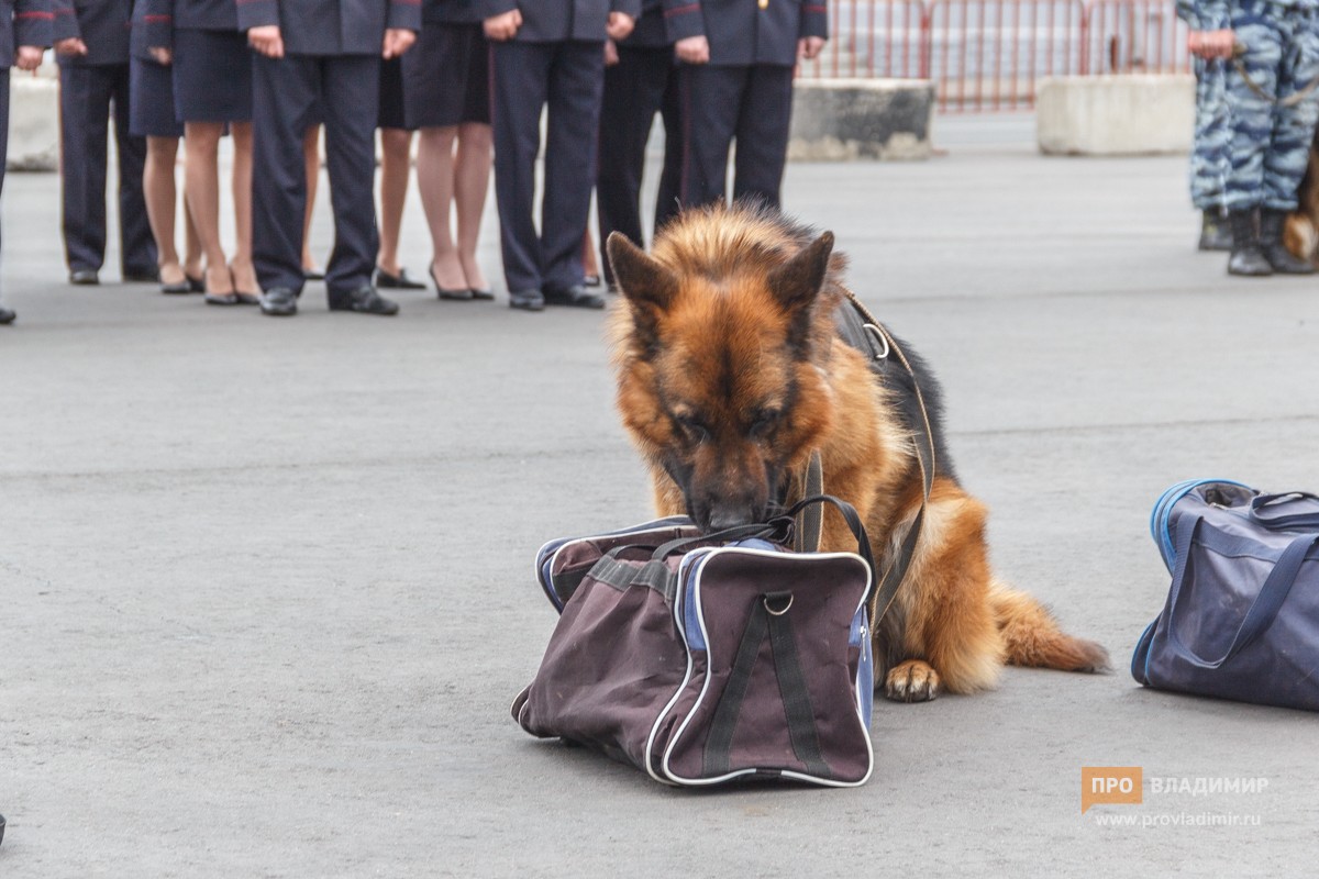 Что умеют сотрудники полиции и их четвероногие помощники, показали прямо на разводе. Полицейский пес обыскивал сумки, искал запрещенные вещества и находил их быстро. Также на глазах зевак кинолог со своим подопечным задержали «преступника».