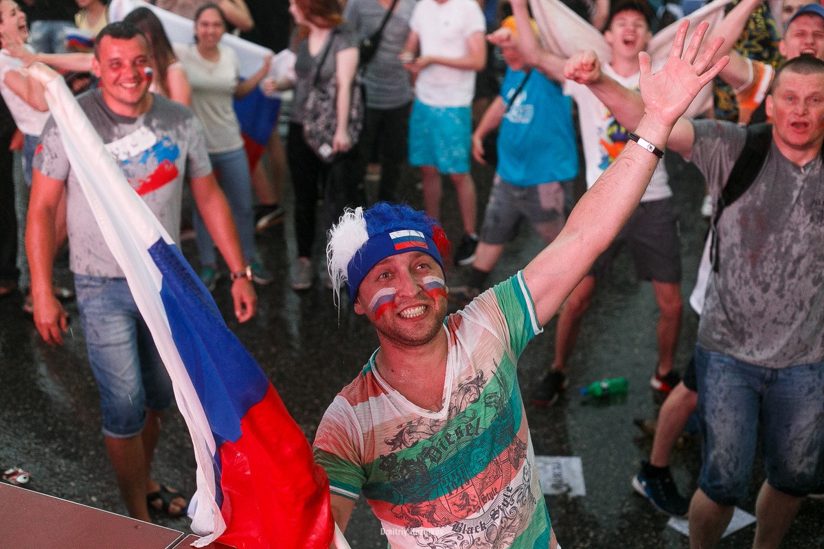 Владимирцы под ливнем радовались победе сборной России