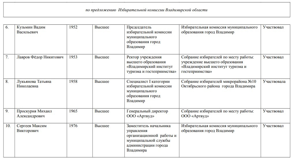 В список включили и нынешнего председателя избиркома Вадима Кузьмина. Очевидно, его на первом заседании комиссии 17 июля переизберут на новый срок.