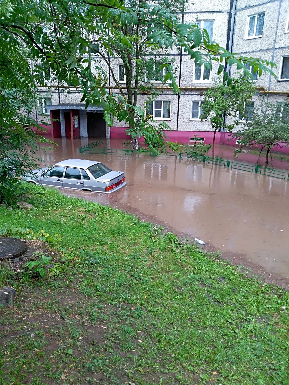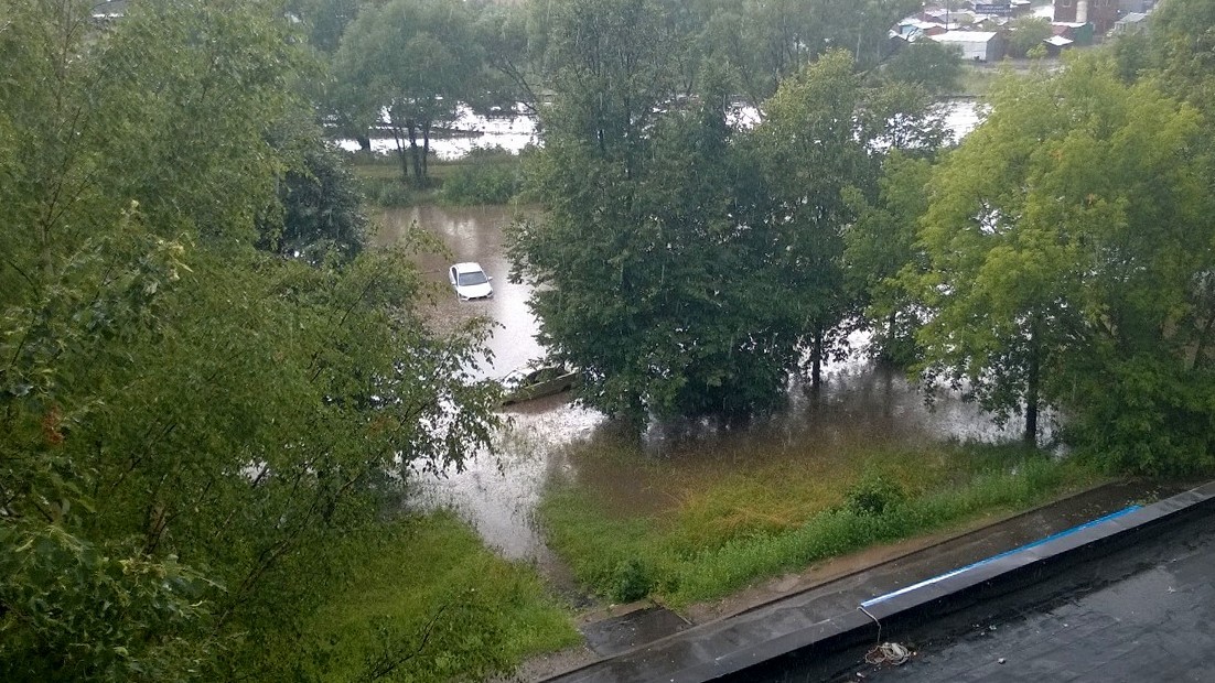 В некоторых местах вода была по колено, до уровня подъездов. Пройти по дороге было невозможно, а машины оказались по капот в воде. Скопившейся водой также затопило подполы в частном секторе.