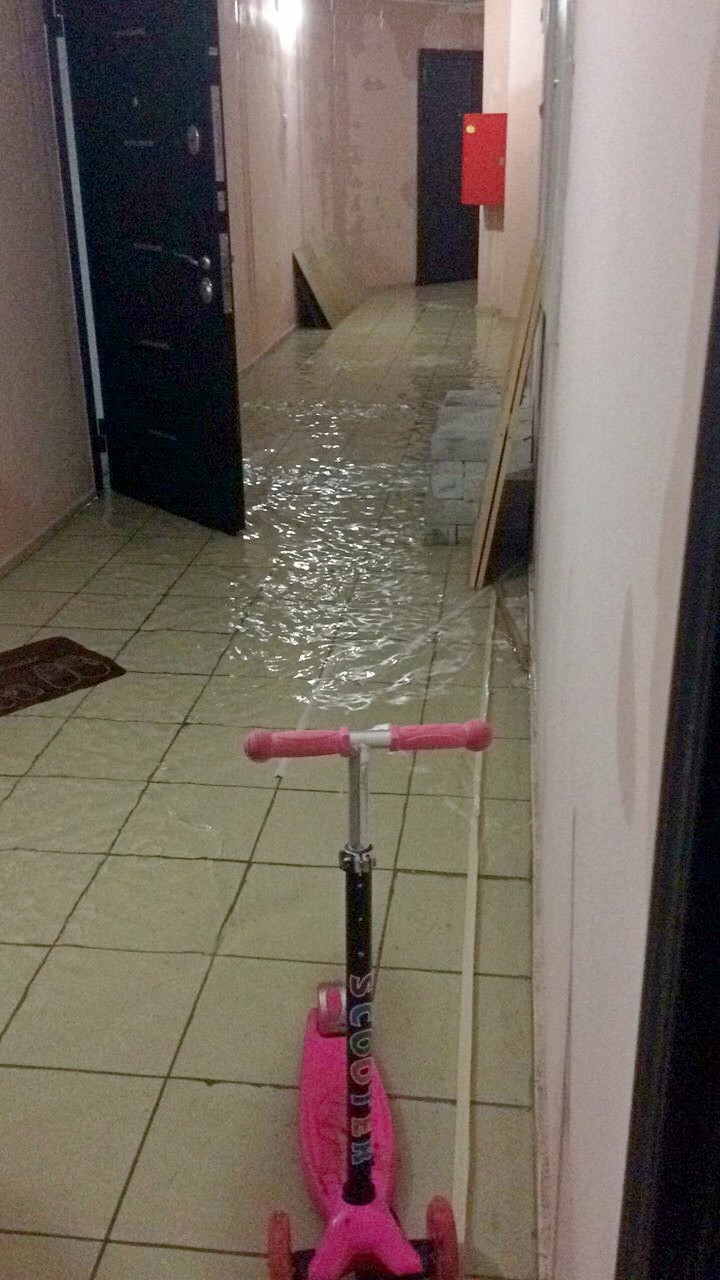 У кого-то с потолка текли небольшие струйки (в том числе через люстру), а некоторые дома протопило с 14-го по 1‑й этаж.