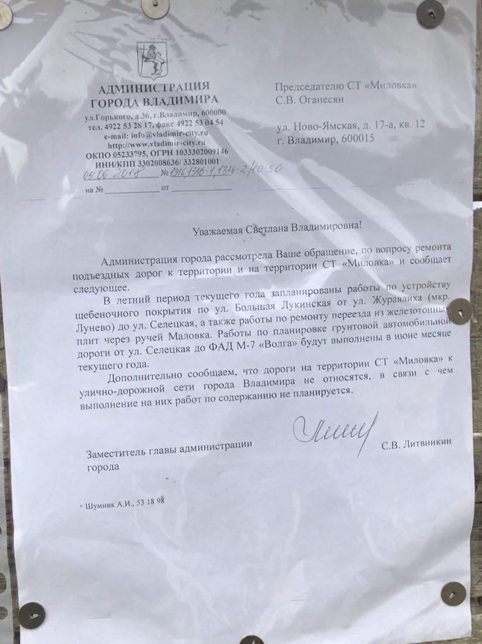От отсутствия дорог в этом районе страдают не только местные жители, но и садоводы. В соседнем с Ширманихой садовом товариществе «Миловка» прямо в поле стоит объявление о сходе, на котором планируется коллективное обсуждение проблем инфраструктуры. Рядом есть копия обращения в администрацию города местной активистки и председателя товарищества Светланы Оганесян.