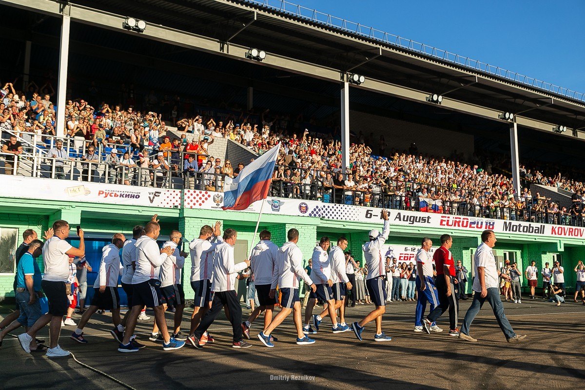 После официальной части, которую неплохо было бы и подсократить, и получасового концерта «Рекорд Оркестра», стартовал главный матч первого дня.