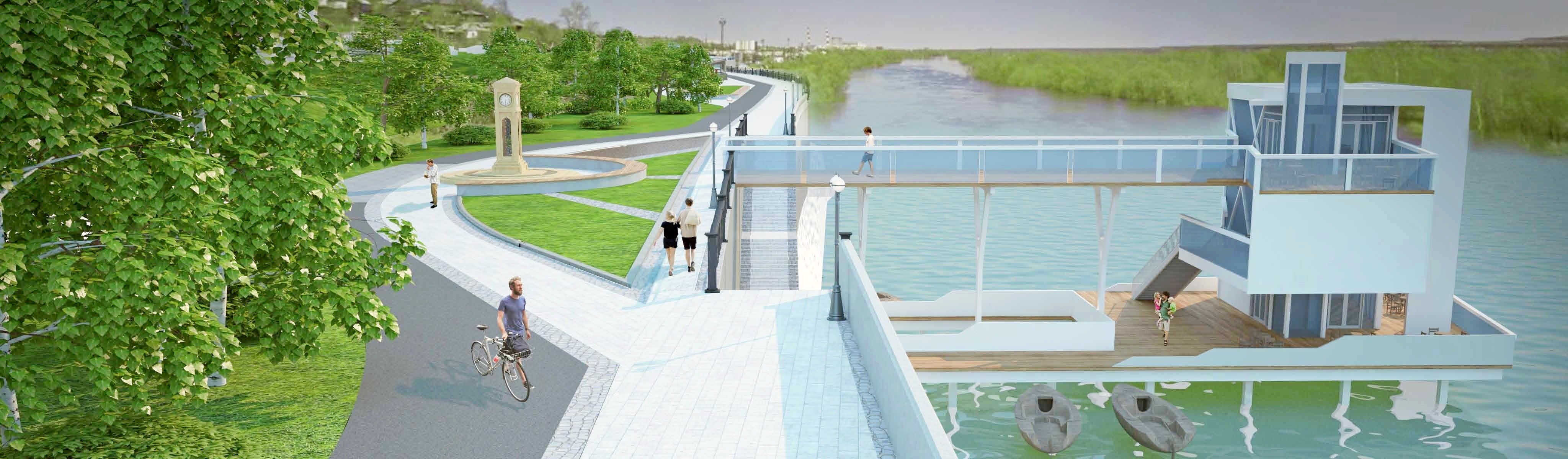 Чтобы отдыху не мешал шум железной дороги, предполагается возведение шумопоглощающих экранов и посадка живого забора. В перспективе на набережной планируется организовать фонтаны, фуд-корт, кафе на воде, пункт проката велосипедного транспорта и пристань. Ориентировочная стоимость всех работ – около 3,5 млрд рублей».