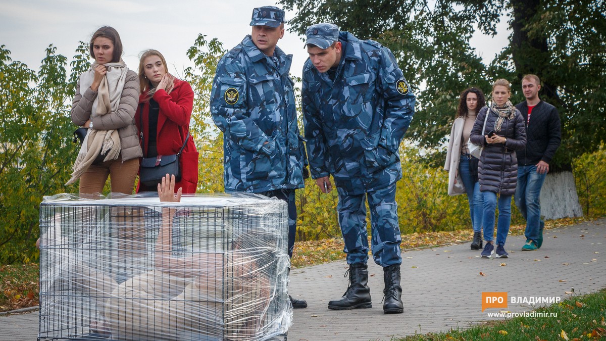 Во Владимире художница в клетке устроила акцию против пыток