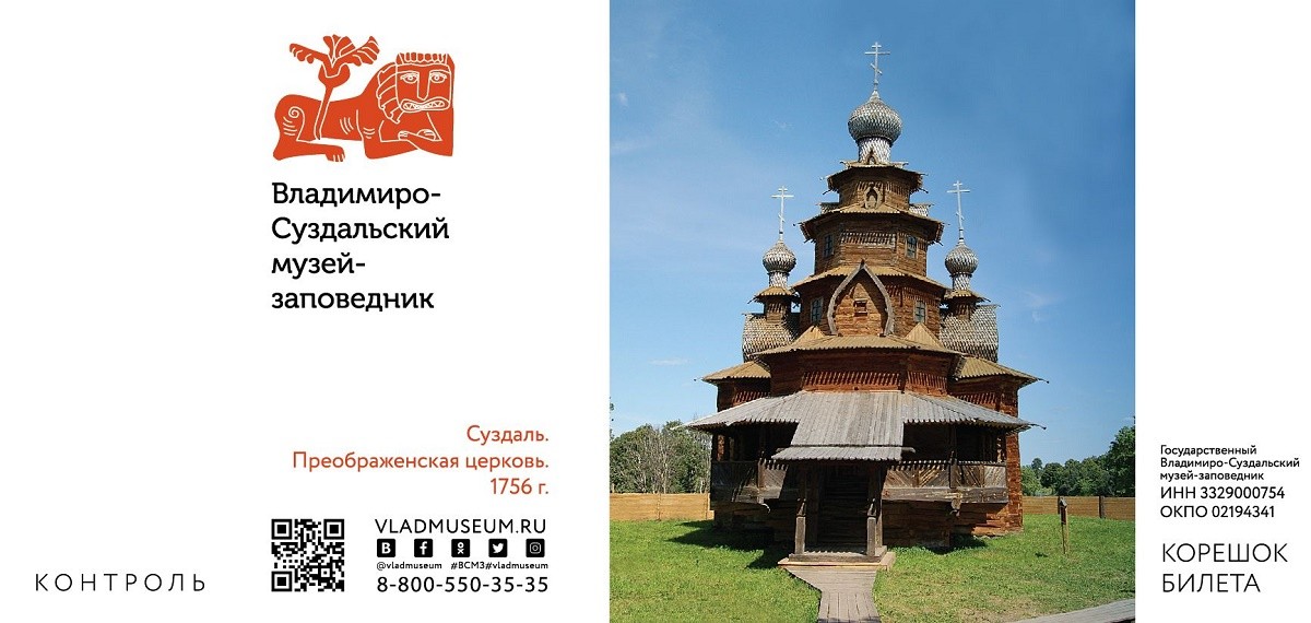Юбилейный билет выдали в кассе музея деревянного зодчества в Суздале