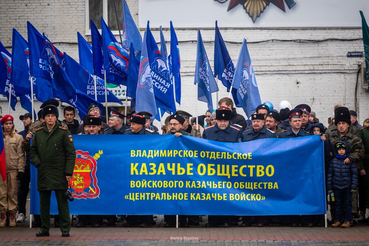 4 ноября во Владимире отпраздновали день народного единства. В отличие от прошлого года, событие прошло без почетных гостей из Крыма, Донецка и Луганска, а также без зеленых человечков и, по понятным причинам, Светланы Орловой. Новый губернатор Сипягин и спикер Заксобрания Владимир Киселев с цветами в руках возглавляли ряды гостей, рядом стоял командующий гарнизоном Игорь Фазлетдинов.