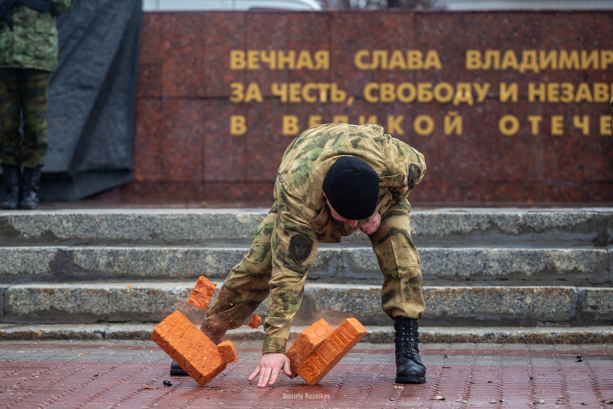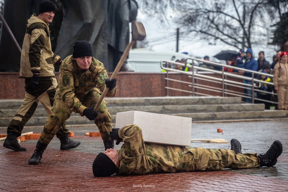 Апофеозом воинственного праздника стало выступление представителей «Боевого братства», больше похожих на кадровых сотрудников спецподразделений.