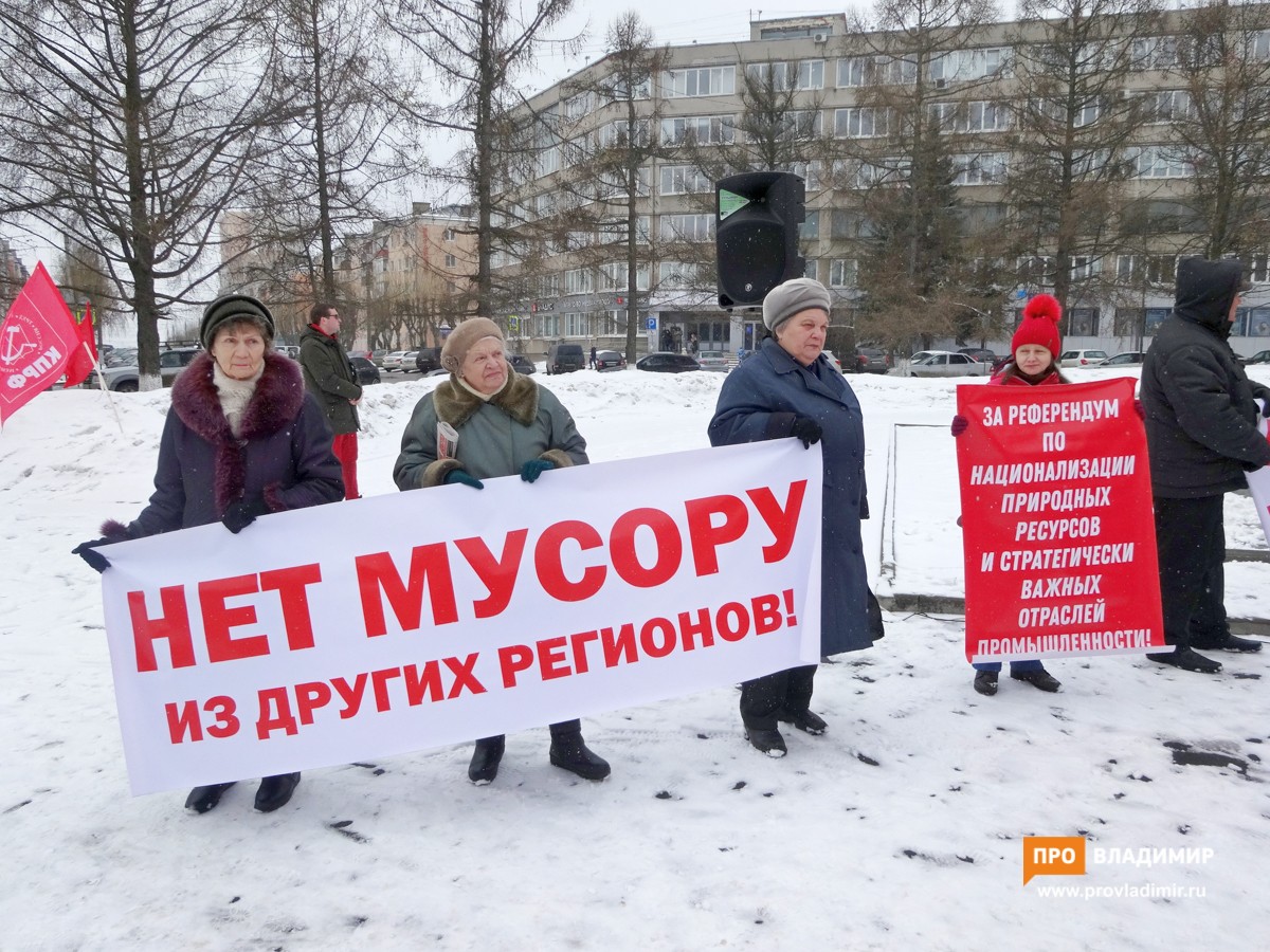 16 марта во Владимире прошел митинг против готовящейся в регионе мусорной реформы. Мэрия согласовала КПРФ акцию на площади Ленина – возможно, в расчете, что все шишки посыпятся на администрацию Владимирской области. Однако в итоге досталось не только чиновникам, но также законодательному собранию, единороссам и мусоровывозящим компаниям.