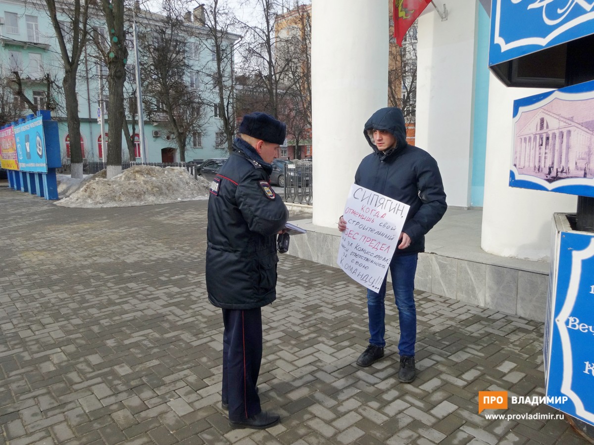 Слушания по генплану прошли 6 ноября 2018 года. Владимирцы высказали массу претензий к предложенному варианту, но практически все из них были проигнорированы, и, придя через четыре месяца на обсуждение ПЗЗ, горожане получили сырой материал с массой ошибок и неточностей. Возможно, именно поэтому непосредственно перед слушаниями у ГДК прошло сразу несколько одиночных пикетов, в которых обличалась строительная политика как сити-менеджера Андрея Шохина, так и губернатора Владимира Сипягина.