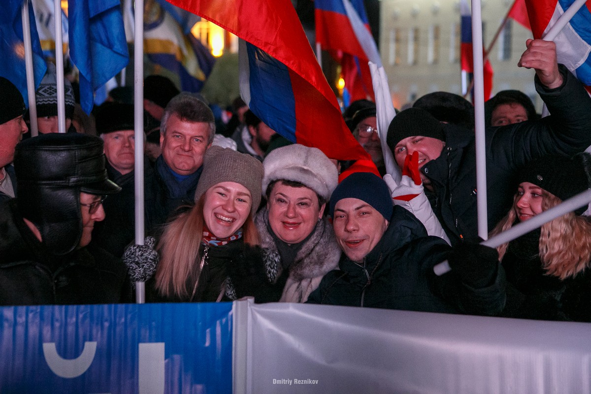Начиная с 2014 года на одну из центральных площадей областной столицы организованно выводили чиновников, рабочие коллективы, студентов и другие категории жителей ради всеобщего ликования в формате выступлений и концертов. Ежегодно официальные власти накручивали число митингующих, заявляя о вдвое-втрое большем количестве участников, чем было зафиксировано на фото и видео.