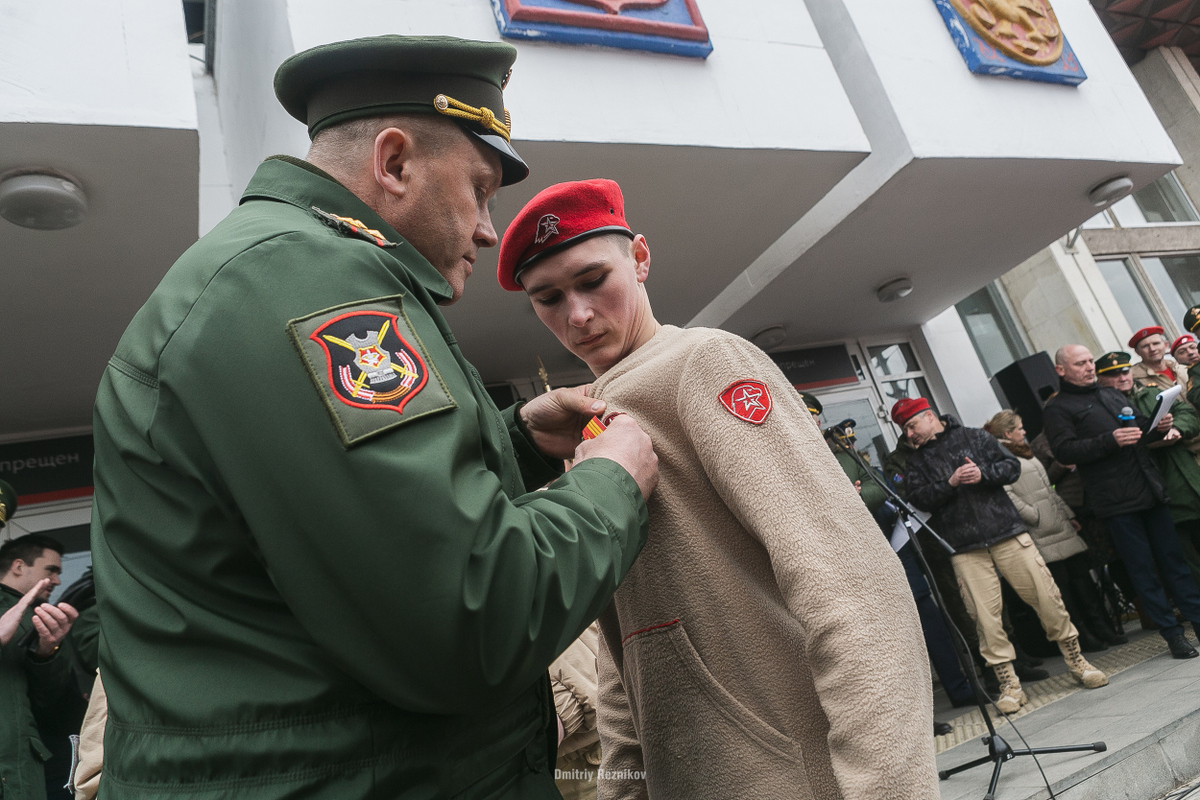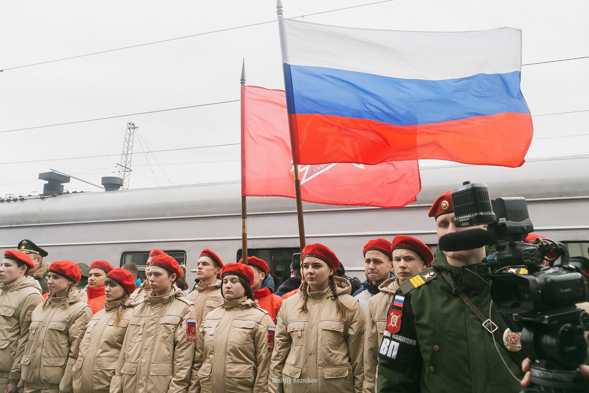 После торжественных речей и обмена подарками с начальником поезда, 150 юнармейцев привели к присяге. Лучшего представителя движения Сергея Финева гвардейский полковник наградил медалью «Знак юнармейской доблести».