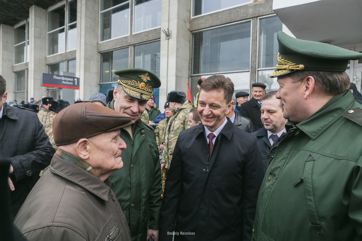 «Сирийский перелом» приехал на платформу под звуки военного оркестра. Встречали поезд замполит Западного военного округа, командующий Владимирским гарнизоном и губернатор Владимир Сипягин. ЗС представлял вице-спикер Роман Кавинов, а город – Ольга Деева. Нашлось место на сцене и престарелому ветерану Николаю Щелконогову.