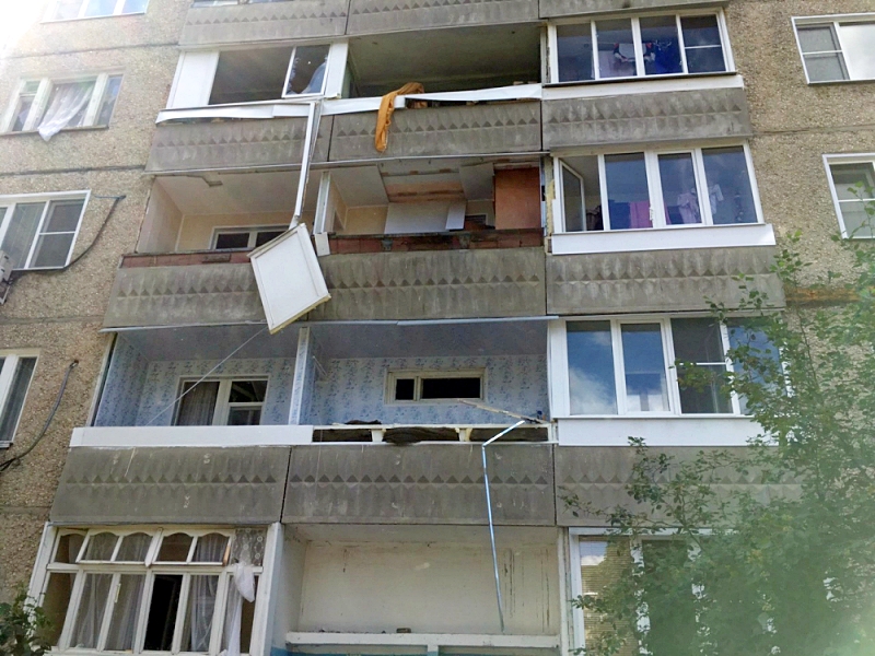 От взрыва пострадали балконы и окна с обеих сторон дома с 1 по 4 этаж. 20 человек эвакуировали из здания.