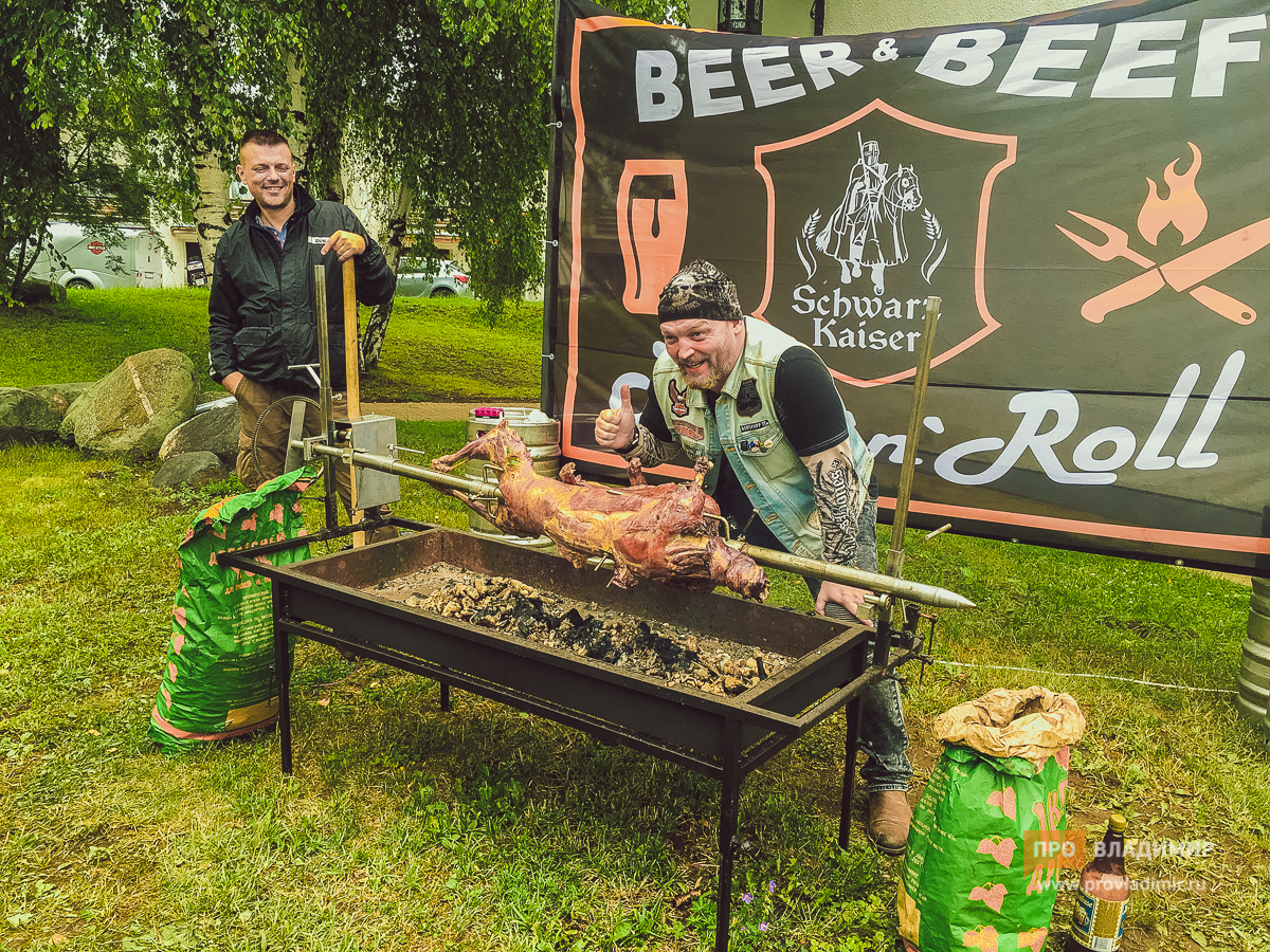 Гостей Blues-Bike Festival развлекали не только блюзом, но и конкурсами, кастом-шоу (это когда мотоцикл не просто транспорт, а произведение искусства), мастер-классом по скрутке сигар, кино и прочими фестивальными радостями. На фото ниже — жаренный на вертеле баран, которого продали на аукционе. Финальную цену отследить не удалось, но среди предложений звучала сумма в 20 тысяч рублей за всю тушу.